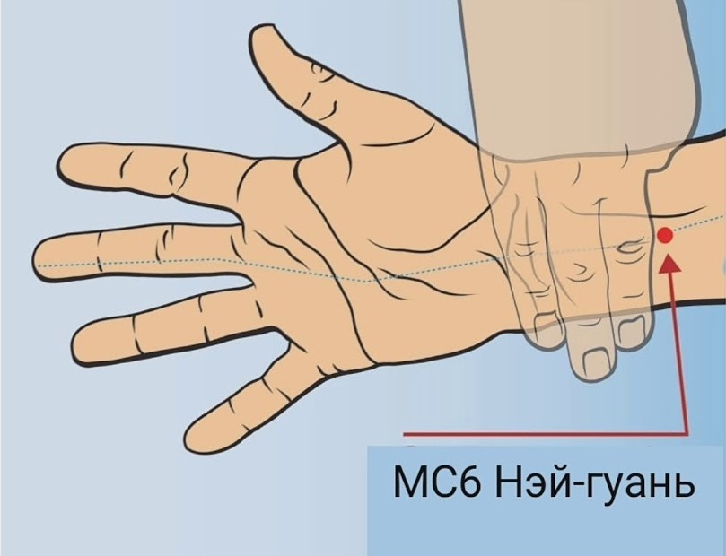 Стимуляция точки: MC 6 Нэй-гуань — является важным местом прохода канальной ци, словно застава предохраняет организм от патогенной ци.