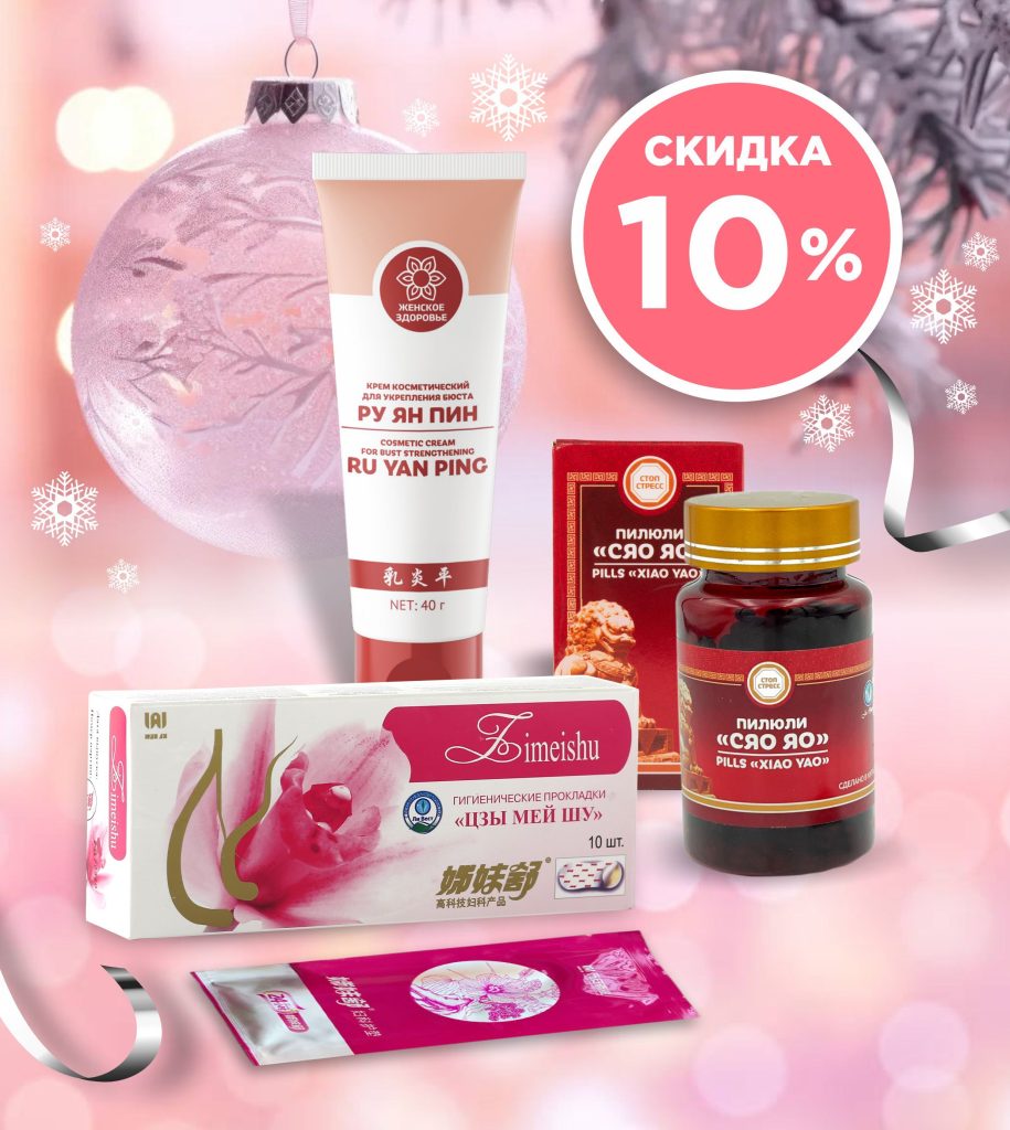 С 24 по 30 ноября 2025 г. при покупке прокладок «Цзы Мэй Шу», крема «Ру Ян Пин» и пилюль «Сяо Яо» — скидка 10 %!