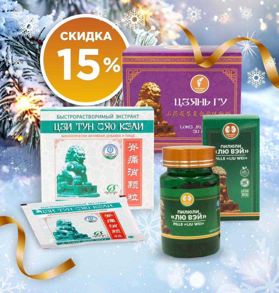 С 24 по 30 ноября 2025 г. при покупке пилюль «Лю Вэй», экстракта «Цзи Тун Сяо Кэли» и концентрата «Цзянь Гу» — скидка 15 %!