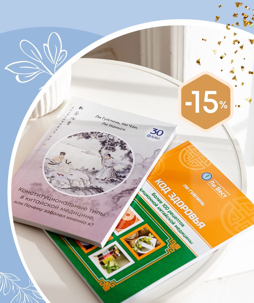 С 16 по 31 марта при покупке книг «Код здоровья. Более 100 рецептов традиционной китайской медицины» и «Конституциональные типы в китайской медицине, или Почему заболел именно я?» — скидка 15 %!