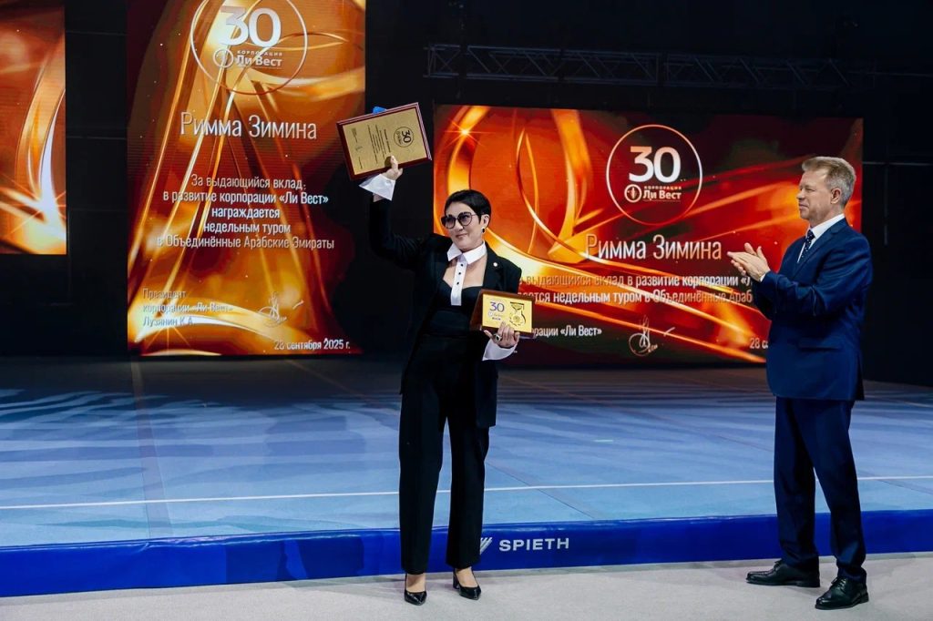 На праздничной сцене почётную медаль «За особый вклад в здоровье нации и интеграцию восточной и западной медицины» получила главный врач компании, президент Общероссийской общественной организации «Общество врачей традиционной китайской медицины», преподаватель Сибирского института интегративной медицины «ЛИ ВЕСТ», автор и наставник проектов «Медакадемия», «Консультант по ТКМ» — Лариса Семёшина. Она в свою очередь вручила награды Партнёрам, чья преданность делу и профессионализм помогли многим встать на путь здоровья. Поздравления получили и новые амбассадоры «Ли Вест» 2025 года.