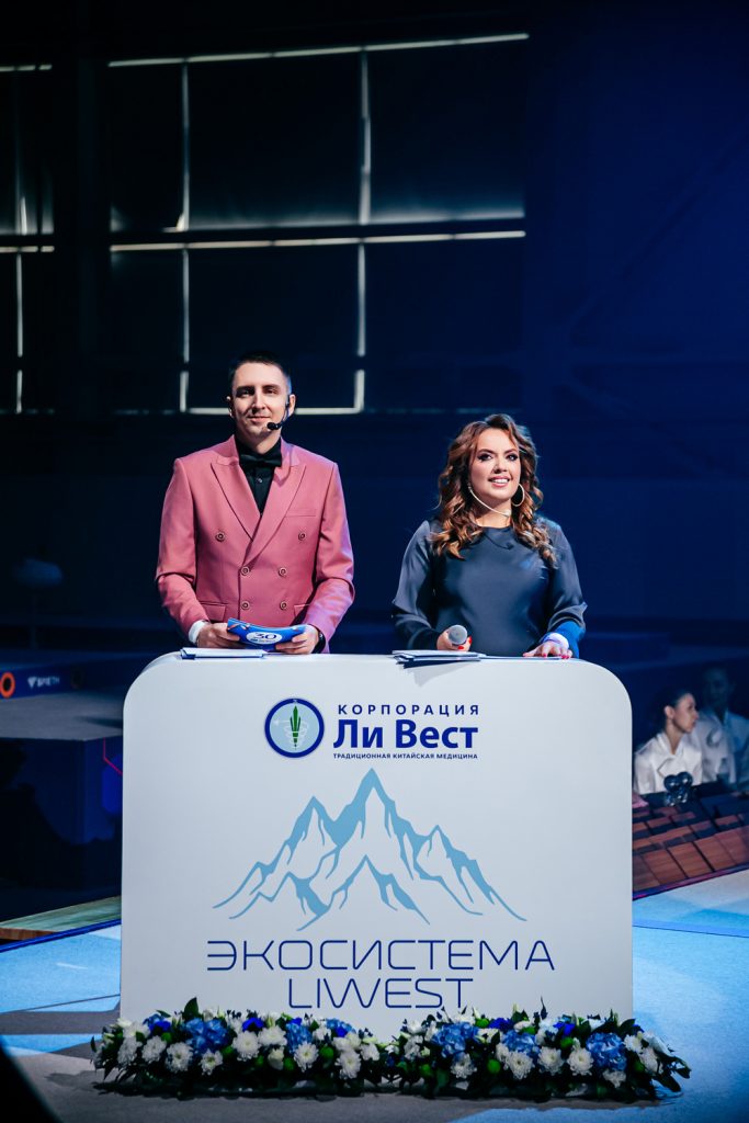 Ведущими праздничной конференции были генеральный директор корпорации «Ли Вест» Алексей Ефремов и теле- и радиоведущая, член Союза журналистов России Алина Маслова, гармонично и слаженно работавшие в дуэте. Их комментарии и непринуждённые шутливые реплики делали весь ход мероприятия лёгким и запоминающимся.