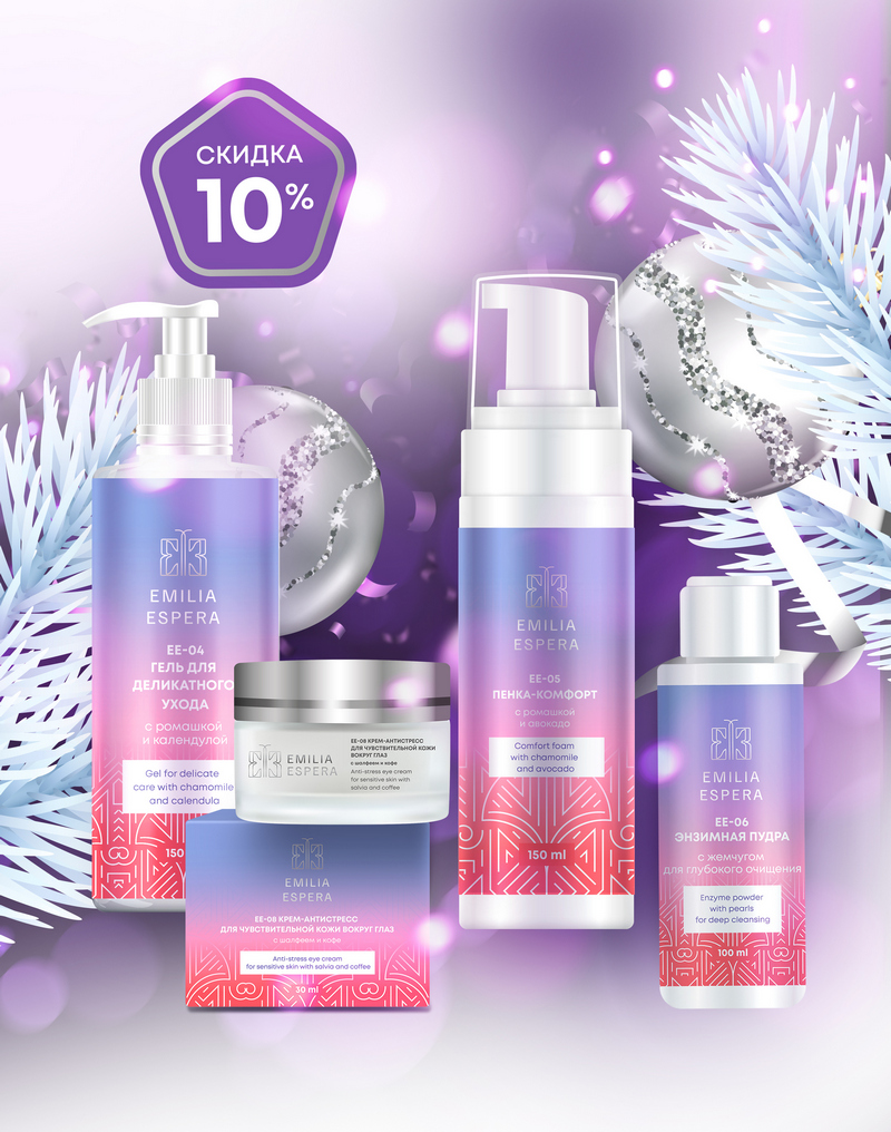 Серия средств для ухода за чувствительной кожей EMILIA ESPERA — это уникальные продукты, которые разработаны специально для бережного и эффективного ухода за раздражённой и склонной к высыпаниям и аллергии кожей.